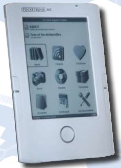 Основной 6‑дюймовый дисплей устройства имеет разрешение 600×800 точек. Качество отображения страниц неплохое, углы обзора также на высоте, поэтому глаза не устают, да и предназначен он исключительно для чтения — все настройки и манипуляции производятся на сенсорном цветном экране, который имеет диагональ 3,5 дюйма и отображает до 65 тыс. цветов. Кстати, дисплей емкостный, так что пользоваться им очень комфортно.