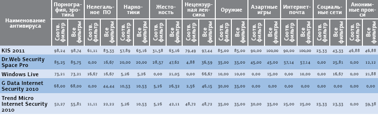 Однако в некоторых ячейках итоговых таблиц стоят нулевые значения, что объясняется неоднозначностью критериев и самого понятия «родительский контроль». Одни разработчики считают, что родительский контроль — это прежде всего противодействие порнографии и насилию, другие включают в него 14—20 категорий. Кроме того, наблюдаются различия и в том, как отнесены сайты к той или иной категории.