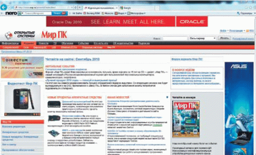 Одним из приятных новшеств в интерфейсе Internet Explorer 9 стали так называемые отрывные вкладки. Достаточно перетащить открытую вкладку в любую часть экрана за пределы браузера, как она превращается в отдельное окно IE 9. Кроме того, вкладки разрешается перетаскивать из одного окна браузера в другое. В общем, обновленный интерфейс Internet Explorer 9 можно обсуждать достаточно долго, но стоит отметить, пожалуй, лишь еще одно революционное изменение Internet Explorer 9 — закрепленные сайты. Смысл их в том, что нужный веб-адрес позволяется закреплять на Панели задач или в меню «Пуск» Windows 7 (достаточно перетащить вкладку с этим адресом в нужное место) и открывать в любой момент, даже при закрытом браузере. Если открыть подобным образом страницу, то интерфейс окна браузера автоматически «подстроится» под сайт, например кнопки Forward и Back окрасятся в цвет значка сайта.