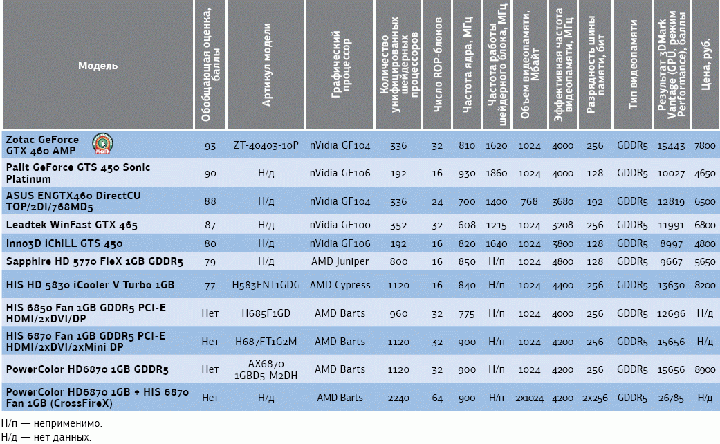 По производительности модель Radeon HD 6870 очень близка к нашему призеру — видеоплате Zotac GeForce GTX 460 AMP, однако стоит учесть, что эта версия GeForce GTX 460 — разогнанная, а протестированные нами Radeon HD 6870 — референсные.