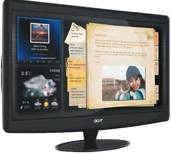 Фирма Acer не перестает удивлять нестандартным подходом к мониторостроению. Так, ее новая модель представляет собой совсем не то устройство, которое мы привыкли видеть. Она поддерживает ряд функций, реализованных в виде так называемых виджетов, таких как календарь, сводки прогноза погоды, часы. Кстати, все они могут обновляться при подключении к Интернету посредством встроенных проводного и Wi-Fi-адаптеров.