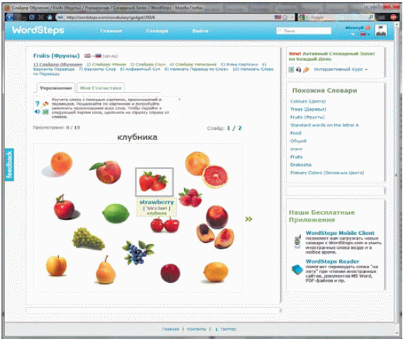 Данный сервис состоит из двух частей: бесплатной и коммерческой. С функциональной точки зрения он оснащен достаточно хорошо — в нем присутствуют все основные инструменты, необходимые для заучивания иностранных слов. Пользовательский интерфейс проекта базируется на Adobe Flash. Кстати, Word Steps работает не только с наиболее популярными языками: английским, французским и немецким, но и с относительно редкими: португальским, китайским, японским и итальянским.