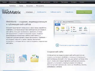 WebMatrix легко загрузить через Интернет (www.microsoft.com/downloads/ru-ru/details.aspx?FamilyID=5b9510a1-bc42-4323-90ab-adf4daaaa2f0). Там же, в Сети можно найти и обучающие материалы. Правда, во время написания статьи тексты были приведены для работы с бета-версией продукта.