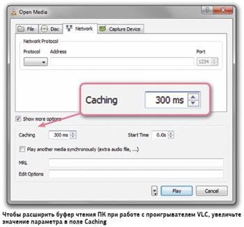 Устраните прерывания потока. Видеопоток может прерываться под влиянием различных факторов (особенно если он поступает с ПК другого пользователя, а не с выделенного сервера Netflix или YouTube). Но есть способ, который поможет увеличить размер буфера чтения системы. Настройка соответствующих параметров приводит к тому, что поток будет запускаться медленнее, но в дальнейшем обрабатываться без перебоев. В приложении VLC откройте меню Open Network Stream, активируйте опцию Show more options и введите нужное число в поле Caching. В меню Organize Windows Media Player выберите пункт Options, перейдите на вкладку Performance и задайте значение Buffering settings.