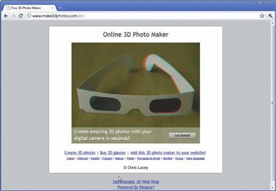 Суть этого ресурса в том, что все необходимые операции с комбинированием данных в цветовых каналах стереопары выполняет его онлайновый движок, генерируя анаглифное фото. Щелкните на Get Started и с помощью кнопок Left-eye photo и Right-eye photo загрузите на сервер изображение для левого и правого глаза соответственно. Нажмите на кнопку Create 3D Photo. Пройдет всего несколько секунд, и в окне браузера можно будет наблюдать трехмерное анаглифное изображение.