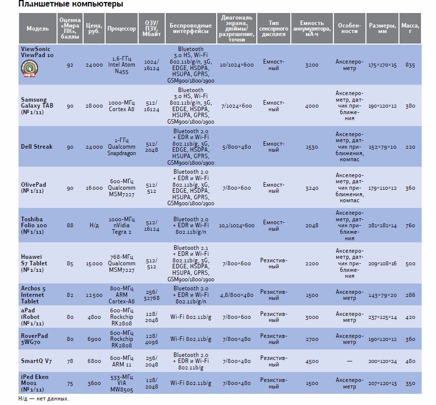 Что касается наших предпочтений, то значок «Лучшая покупка» мы пока не присуждаем. Дело в том, что недорогие устройства, продающиеся в компьютерных магазинах, на наш взгляд, пока еще откровенно сыроваты. А вот «Выбор редакции» по праву достался модели ViewSonic ViewPad 10. Несмотря на высокую цену, этот аппарат обладает привлекательным дизайном и отличной функциональностью.