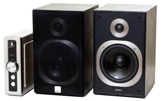 И последний объект нашего исследования — уникальная стереосистема, состоящая из двух пассивных колонок и усилителя. Последний является отдельным устройством и осуществляет всю коммутацию. Он выполнен в элегантном вертикальном корпусе с приятным сочетанием цветов. Корпусы колонок, имеющие классическую форму, изготовлены из MDF и отделаны темным шпоном. Они стоят на небольших ножках. Высокочастотный динамик имеет классический шелковый купол. Средне/нижнечастотный изготовлен из пропитанной ткани и установлен на очень мягком подвесе. В результате всех этих ухищрений производителю удалось добиться очень приличного воспроизведения и достаточного уровня громкости, особенно с качественных источников сигнала. А вот недостатки файлов, записанных с сильным сжатием или низким битрейтом, колонки чересчур прямолинейно демонстрируют в виде излишней басовитости, которую приходится корректировать вручную. Высокие частоты звонкие и приятные, благодаря чему акустика подойдет для воспроизведения джазовых композиций и музыки в стиле лаунж. Увы, это не относится к рок-музыке.