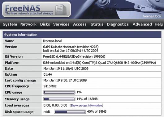 Программное обеспечение с открытым исходным текстом FreeNAS (find.pcworld.com/71101) предназначено специально для того, чтобы превратить ПК в устройство хранения, подключаемое к сети. Система построена на основе FreeBSD -- одной из разновидностей ОС Unix. Если вы опасаетесь сразу устанавливать на диск незнакомую версию, то поместите FreeNAS в варианте LiveCD. Он представляет собой записанный на компакт-диск образ ISO, загружаемый с оптического дисковода и запускаемый из памяти. Старую операционную систему можно сохранять на жестком диске, пока вы не почувствуете, что FreeNAS отвечает вашим требованиям.