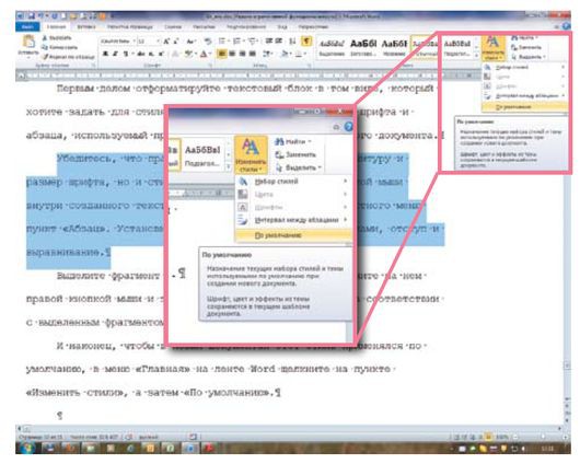 И наконец, чтобы в новых документах этот стиль применялся по умолчанию, в меню «Главная» на ленте Word щелкните на пункте «Изменить стили», а затем «По умолчанию».