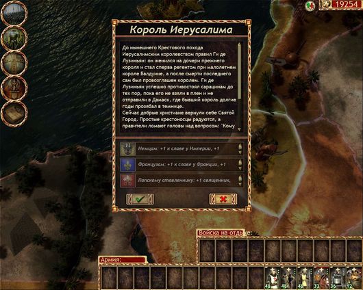 • Начиная кампанию за крестоносцев, первым делом нужно купить Ричарду Львиное Сердце лошадей, т.е. перевести отряд в категорию рыцарской конницы.