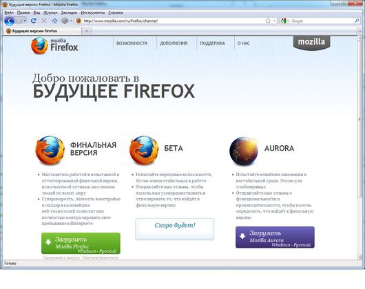 Согласно новому плану Mozilla, обновление по каналу beta должно осуществляться еженедельно, а по каналам nightly и aurora – ежедневно. Готовая версия Firefox будет выпускаться через каждые шесть недель. Причем версии aurora будут выкладываться в свободный доступ на странице www.mozilla.com/ru/firefox/channel, так что протестировать новый функционал сможет любой желающий.