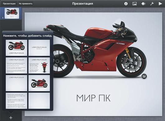 Однако с момента своего первого появления программа была заметно улучшена, и теперь у пользователей появилась возможность эффективно управлять презентацией, даже не глядя на внешний дисплей. При хорошем уровне подготовки выступающего впечатляющие презентации можно проводить прямо на iPad, не прибегая к помощи портативного компьютера.