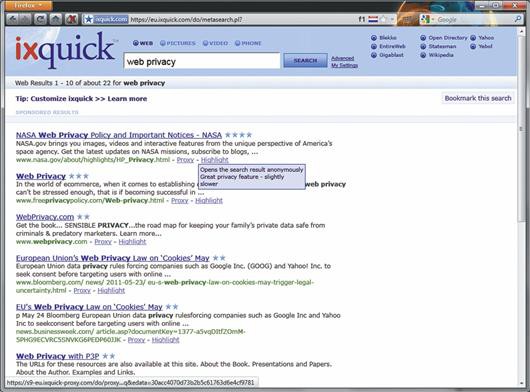 Метапоисковик Ixquick располагает собственным прокси-сервисом