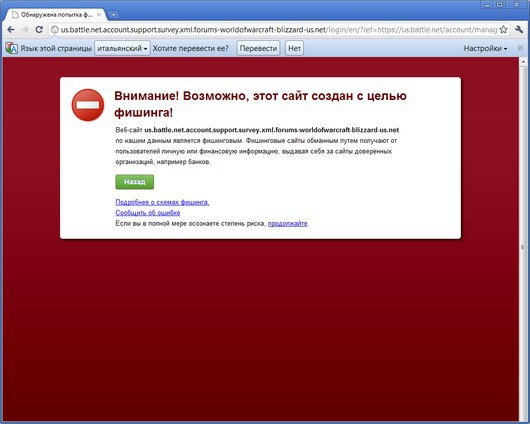 Если доменное имя совпадет с именем из черного списка, сервер Fraud and Malware Protection возвратит браузеру XML-документ, в котором будет описана проблема (фишинг или вредоносное ПО).