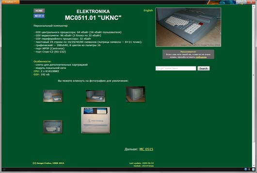 Если же вы с ностальгией вспоминаете более привычную в наших краях технику, зайдите на сайт «Коллекция советской цифровой электроники». Здесь приведены сведения о более чем полутора сотнях моделей, начиная от механических калькуляторов до «самосборных» компьютеров семейства Spectrum. Среди виртуальных экспонатов встречаются как хорошо известные серийные, так и довольно редкие, малоизвестные аппараты. К сожалению, характеристика им дается самая краткая -- буквально несколько строк текста да набор фотографий.