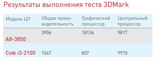 Модель A8-3850 оказалась здесь безусловным лидером, продукция AMD сумела в полной мере продемонстрировать всю мощь платформы Lynx. Результаты выполнения теста 3DMark отражены в таблице. Более высокие баллы соответствуют более высокой производительности.