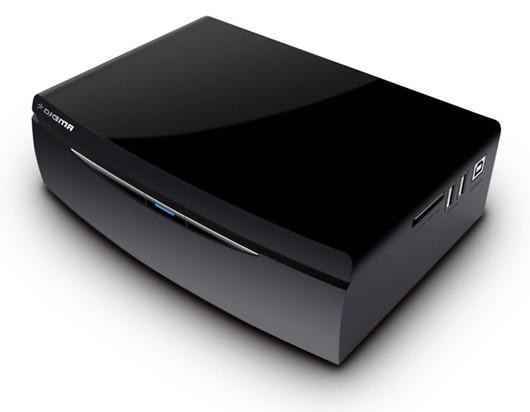 Дизайн этого аппарата, несомненно, можно назвать более чем удачным. Его черный прямоугольный корпус со скругленными углами позволяет осуществить быстрый доступ к жесткому диску, крышка лотка которого вынесена на переднюю панель. Качество сборки очень неплохое, корпус оставляет впечатление цельного монолита, ничего не скрипит и не болтается. Пожалуй, единственным недостатоком является глянцевая верхняя крышка, прекрасно собирающая пыль и отпечатки пальцев.