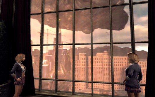 Впрочем, озорницы быстро переключаются на серьезный лад и напоминают своему кумиру, что его уже давно ждут в студии, внизу небоскреба. Оказывается, там готовится грандиозное шоу, посвященное Дюку. Правда, на фоне их радостного щебетания возникает и первая тревожная нотка. Как только Ньюкем победно закончил свою игру, огромный телевизор переключился в режим передачи новостей и обеспокоенный диктор сообщил о появлении над городами Северной Америки множества огромных инопланетных кораблей.