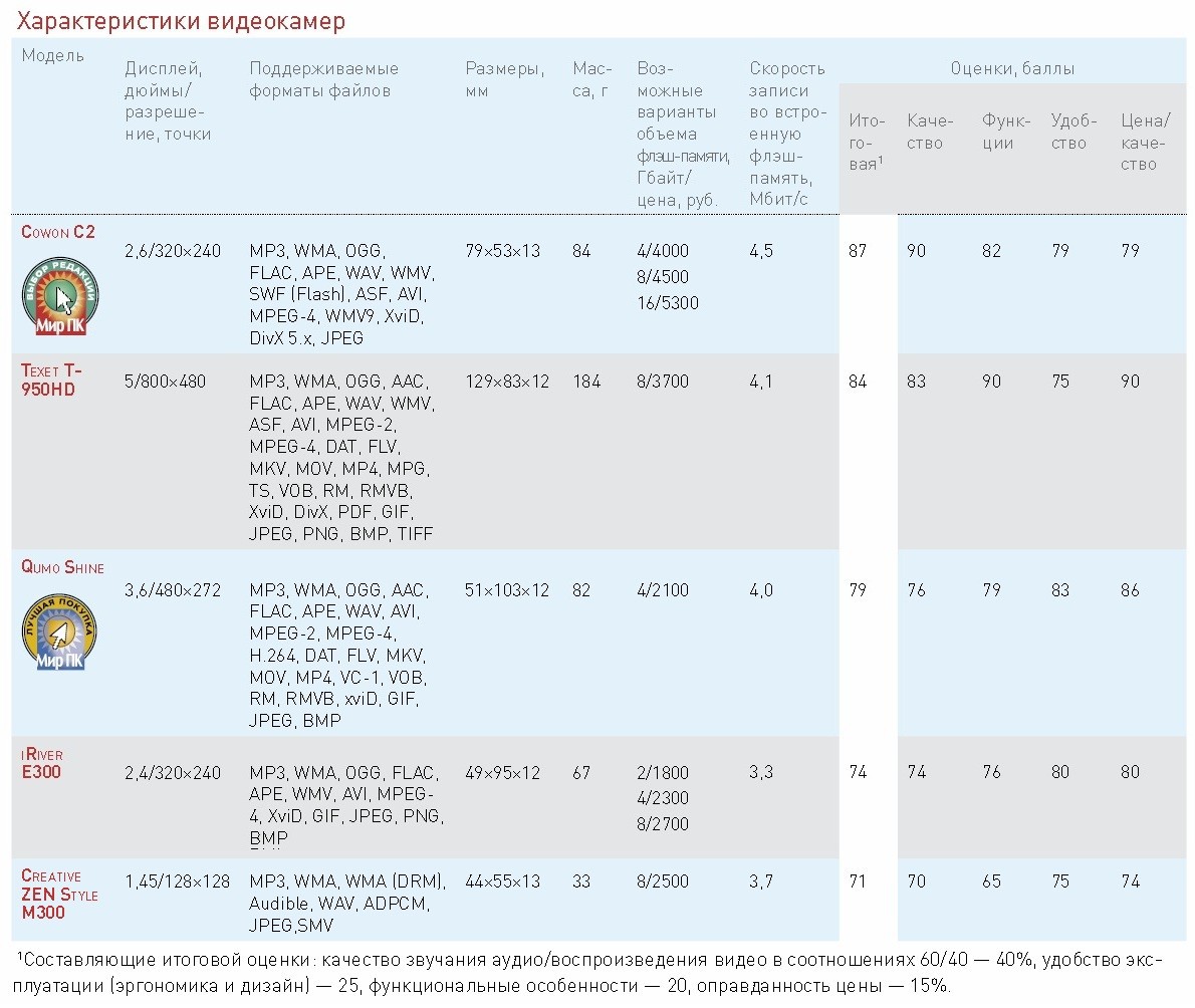 Качество звучания представленных устройств мы проверяли с помощью теста FSQ (Fast Sound Quality), от Лиги Звука ( www.liga-zvuka.ru ). Он подробно описан в «Мире ПК", №2/07. В качестве эталонных были задействованы высококачественные наушники M-Audio Studiophile Q40. Для оценки возможностей воспроизведения видео использовалось несколько видеороликов, кодированных в различных форматах и разрешениях. Скорость записи во встроенную флэш-память измерялась тестовым пакетом SiSoftware Sandra Pro Business 2011. Рассматривались дополнительные функции, реализованные в представленных устройствах, и время непрерывного воспроизведения аудио- и видеофайлов.