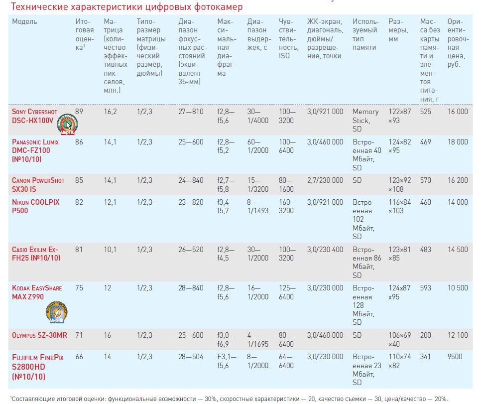 Технические характеристики цифровых фотокамер