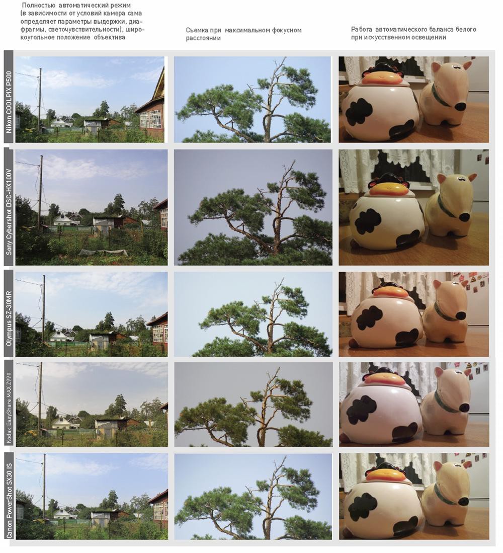 Все рассмотренные фотокамеры могут похвастаться широким диапазоном фокусных расстояний объетивов, однако воспользоваться их максимальными значениями в большинстве случаев удается лишь при съемке на ярком солнце или используя штатив, что не всегда удобно. Выбирая среди представленных аппаратов мы хотели бы выделить модель Sony Cybershot DSC-HX100V, которой заслуженно присуждается знак «Выбор редакции». А вполне оправданным выбором при разумной цене может стать Kodak EazyShare Z990 – ему мы присудили звание «Лучшая покупка».