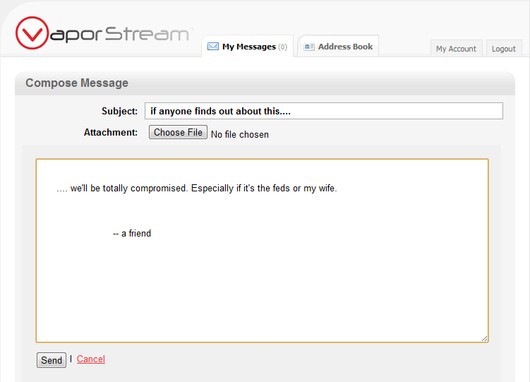 Если вам нужно сохранить свою переписку в тайне, воспользуйтесь веб-сервисом VaporStream. В этом случае сообщения нигде не сохраняются, не копируются и не переадресуются. VaporStream даже не отображает на одном экране с сообщением адрес отправителя и получателя (снимок образа экрана с сообщением получить их не поможет). А когда получатель закончит чтение сообщения, оно самоуничтожится без возможности восстановления. Цена вопроса? Каких-то 7,5 долл. в месяц. Правда, аккаунты VaporStream должны иметь как отправитель, так и получатель.