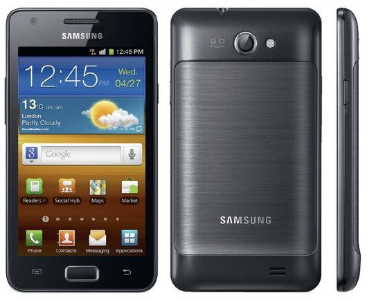 Новинка от Samsung дороже, чем Xperia neo. По сути, она относится к среднему классу нового поколения. Устройство почти полностью копирует флагман Galaxy S II (даже в дизайне). По сравнению с топовой моделью линейки, наш «подопытный» толще на 1 мм, обладает чуть меньшим экраном (4,2 против 4,3 дюйма), другой матрицей (SuperClearLCD вместо Super AMOLED Plus), чуть более слабым процессором (1 ГГц против 1,2 ГГц), меньшим объемом встроенной памяти (8 Гбайт) и более слабой камерой (5 вместо 8 Мпикс, запись видео 720p вместо 1080p). Несмотря на эти «упрощения», Galaxy R остается очень привлекательным.
