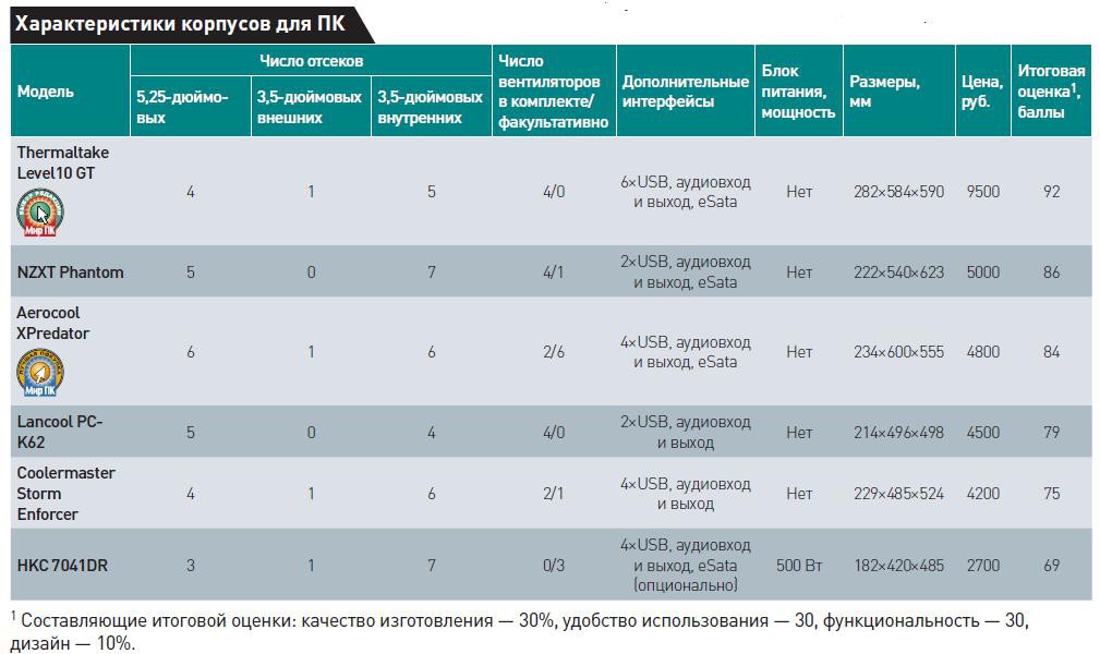 Лучшим из корпусов мы сочли корпус фирмы Thtrmaltake -- ему достается значок «Выбор редакции». Это наиболее качественный и удобный продукт из представленных здесь. А вот изделие Aerocool XPredator отличается оптимальным соотношением цена/качество, и потому оно получает значок «Лучшая покупка».