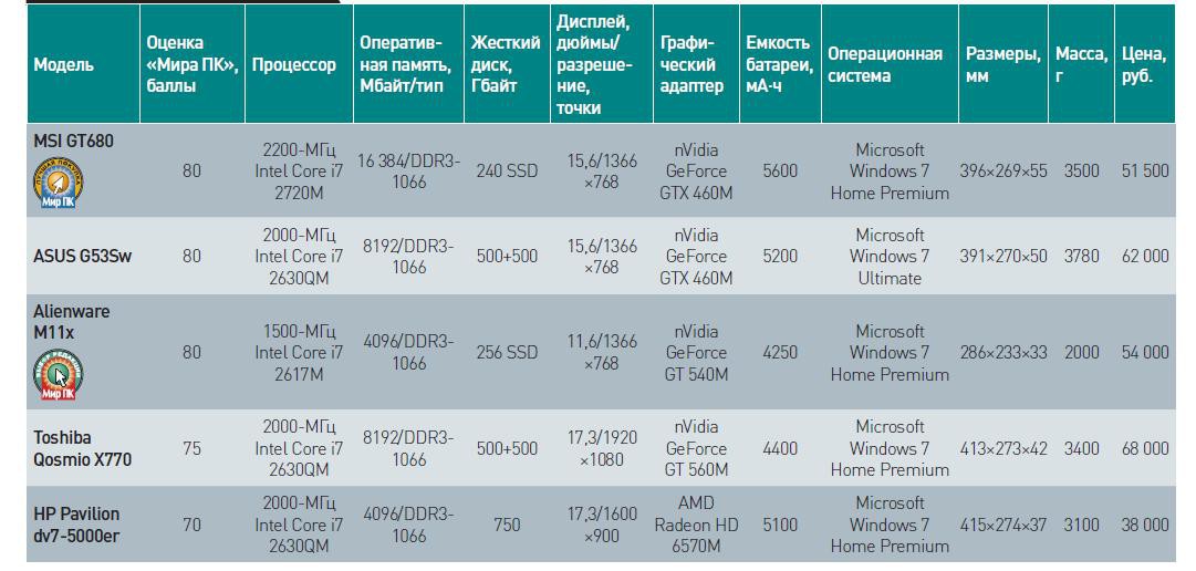 Что же касается наших предпочтений, то «Лучшей покупкой» мы посчитали MSI GT680, имеющий отличные технические характеристики при относительно демократичной цене, тогда как «Выбором редакции» стала модель Alienware M11x. Все-таки, несмотря на немалую цену, именно этот ноутбук оказался наиболее привлекательным устройством, сочетающим настоящую мобильность и неплохую производительность.