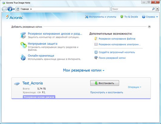 Acronis True Image Home предлагает в числе прочего коммерческий