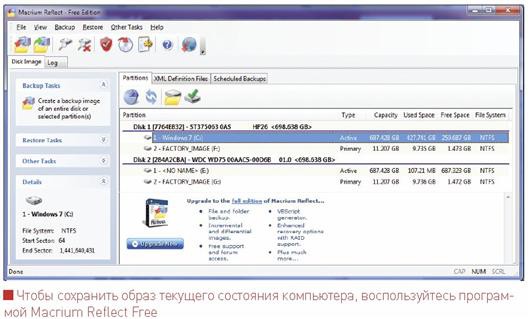 Лично я неравнодушен к программе Macrium Reflect Free (find.pcworld.com/63521). Использовать ее довольно просто, она позволяет сохранить файл образа на внешнем носителе, сетевом диске или диске CD/DVD.
