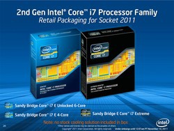 Были анонсированы процессоры Intel Core i7-3960X Extreme Edition и Intel Core i7-3930K, ставшие первыми шестиядерными процессорами второго поколения в семействе Intel Core. Они содержат более 2 млрд. транзисторов и обладают вычислительной мощностью, сравнимой с производительностью 365 тыc. чипов Intel 4004.