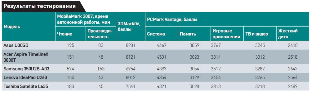 Кроме того, тестирование показало, что современные портативные компьютеры удобны не только для повседневной работы. Они вполне подойдут и для отдыха -- на них можно посмотреть фильмы с HD-разрешением или, к примеру, поиграть в не очень требовательные к ресурсам игры. Время автономной работы также порадовало (по крайней мере, у большинства рассмотренных моделей).