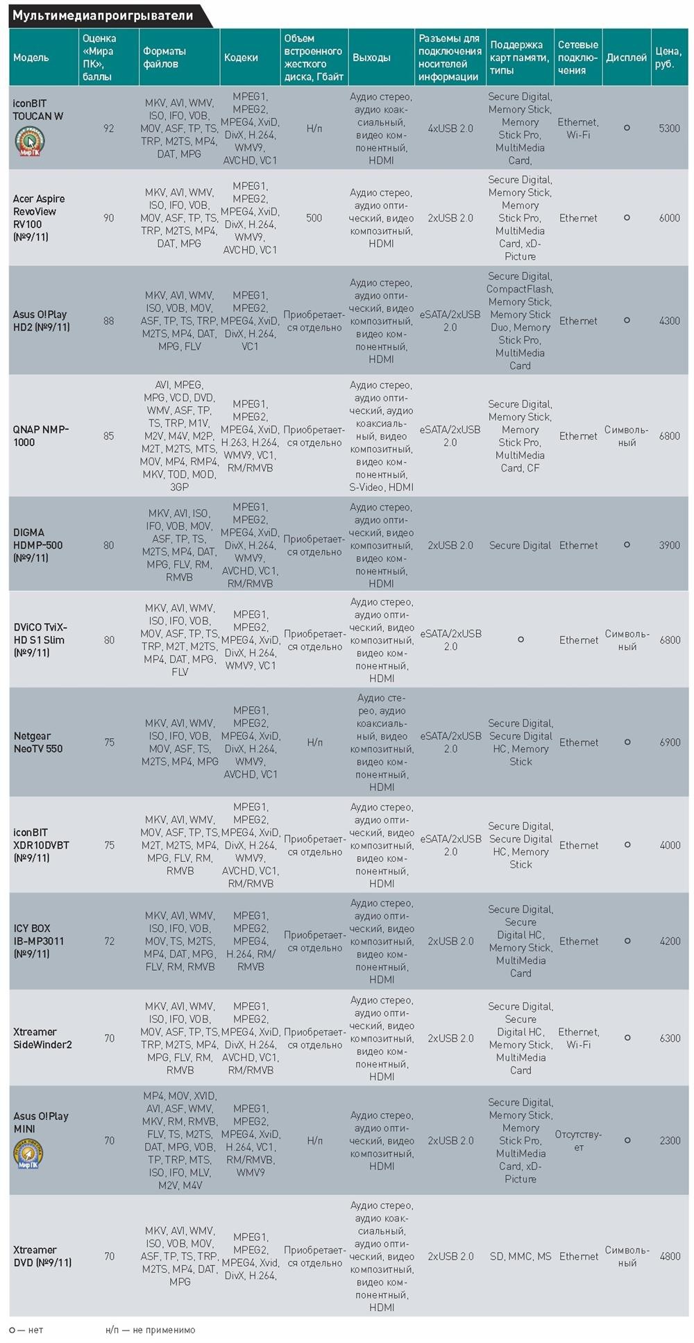 Что же касается наших предпочтений, но «Выбором редакции» стал проигрыватель iconBIT TOUCAN W -- именно это устройство оказалось наиболее современным и функциональным. Естественно, немалую роль при выборе сыграло и наличие современной ОС Android 2.3, превращающей плеер в настоящий мини-компьютер. А вот «Лучшей покупкой» мы посчитали ASUS O!Play MINI, поскольку, несмотря на определенный конструкционный минимализм, данный аппарат при весьма невысокой цене способен обеспечить пользователя приятными минутами просмотра любимого видеофильма, причем с отличным качеством изображения.