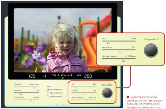 Хотите узнать, какие значения переменных параметров (фокусного расстояния, чувствительности, диафрагмы, выдержки и т.д.) следует задать для получения качественного снимка? В этом вам поможет сайт, имитирующий операции цифрового зеркального фотоаппарата и позволяющий мгновенно увидеть результаты, полученные при тех или иных настройках.