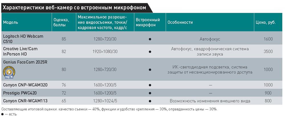 Мы рассмотрели несколько веб-камер, обладающих различной функциональной насыщенностью. И хотя разброс цен на представленные образцы весьма велик, стоит отметить, что большинство недорогих моделей при стандартных настройках разрешения по качеству картинки не слишком уступает старшим собратьям. Различия серьезно проявляются лишь при выставлении максимальных значений разрешения. После обсуждения представленных здесь устройств мы решили отметить значком «Лучшая покупка» Genius FaceCam 2025R, которое при средней цене формирует приемлемого качества видеопоток и имеет хорошую функциональность.