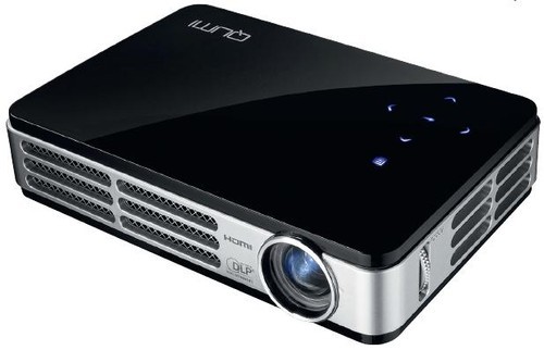 Компания Vivitek не так давно вышла на российский рынок, но уже может предложить покупателю широкий модельный ряд устройств. Очередную модель можно отнести к разряду ультрапортативных, но до карманных моделей она все же недотягивает. Аппарат компактный -- 162x32x102 мм, его масса чуть больше 0,6 кг. Эта модель построена на базе микрозеркальной технологии DLP,а значит, пресловутый эффект радуги проявляется, хотя и незначительно. Разрешение выводимой картинки 1280х800 точек, показатель светового потока 300 лм.