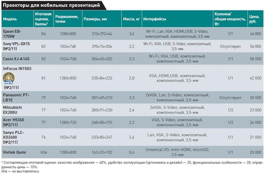 Трудно представить себе современную презентацию без использования проектора. Но он должен обладать высокими показателями контрастности и яркости, для того чтобы обеспечить приемлемую картинку даже в освещенном помещении. В случае же разъездной работы при выборе проектора на первый план выходят такие параметры, как размеры и масса аппарата. Мы рассмотрим пять моделей проекторов для мобильных презентаций.