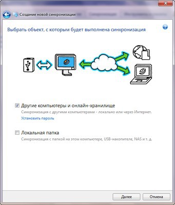 Выбор объекта, с которым будет выполнена синхронизация