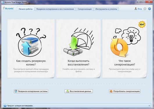 Стартовое окно Acronis True Image Home 2012