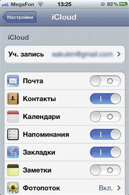 Возможность автоматического переноса данных между устройством с операционной системой iOS и облаком действительно впечатляет, но при этом батарея также очень быстро истощается. Перейдите в меню Settings/iCloud и внимательно посмотрите на параметры, которые здесь находятся. Если вам не нужно ежедневно создавать новые контакты, события, напоминания, закладки и заметки и вы не желаете автоматически получать обновления этих элементов с других своих устройств, имеет смысл отключить все настройки.