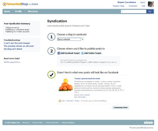 В приложении NetworkedBlogs легко настроить публикацию