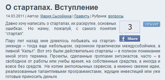 Так выглядят кнопки Share и Tweet, размещенные возле записи блога