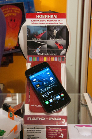 Понятное дело, LeFutur не сумел обойтись без нанотехнологий. Разноцветные коврики на любой вкус, по имени Nano-Pad, без всяких уцепов, липучек и магнитиков держат на себе любой вменяемый коммуникатор (на планшетах, правда, не проверял), во всяком случае мой Nexus зафиксировался как влитой. И понятно, они сами легко пристают к любой негоризонтальной (впрочем, и к горизонтальной) поверхности.