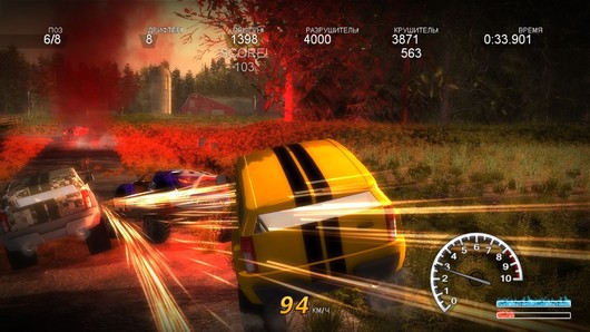 «В каждой гонке 20 000 разрушаемых объектов!» -- зазывно голосят разработчики FlatOut 3, и, что самое интересное, они почти не врут. Но что толку от всех этих сбиваемых столбиков, разлетающихся бочек и скачущих покрышек, если сам автомобиль обладает физикой теннисного мячика? И это в игре, где столкновения и аварии -- плоть от плоти игрового процесса. Кошмар и тихий ужас, никакого сравнения даже с первым FlatOut, а ведь с тех пор прошло ни много ни мало семь лет -- целая эпоха в развитии физических движков для компьютерных игр. Графика также производит двоякое впечатление: аккуратные модели машин, мягкий ненавязчивый блюр в нужных местах, красивая сочная цветовая палитра, легко уживающаяся под одной крышей с кривыми тенями, откровенно недотекстурированными объектами на треках, устаревшими лет на пять эффектами огня и дыма, и т.п. А разгадка одна -- бюджетный проект плюс студия-«середнячок», имеющая в послужном списке такие «шедевры», как Street Racer Europe.