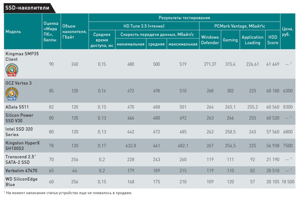 Что же касается наших традиционных предпочтений, то «Выбор редакции» на сей раз пал на SSD-диск Kingmax SMP35 Client, обладающий не только высокой емкостью, но и отличными скоростными показателями, тогда как «Лучшей покупкой» мы посчитали OCZ Vertex 3, который имеет минимальную стоимость единицы хранения информации среди протестированных нами устройств.