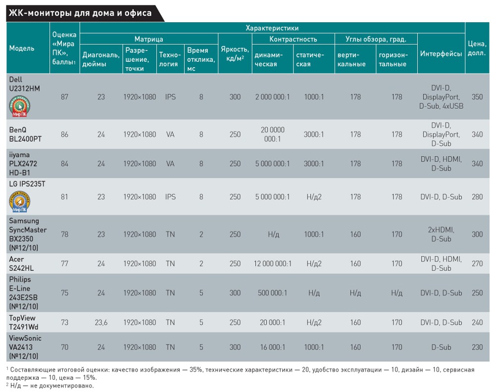 Когда мы обсуждали представленные устройства, то решили остановиться на модели Dell U2312HM, которая имеет приятный дизайн и обеспечивает качественное изображение. Она заслуженно получает значок «Выбор редакции». Разумным компромиссом при невысокой цене будет, на наш взгляд, монитор компании LG под индексом IPS235Т. Ему и присуждается награда «Лучшая покупка».