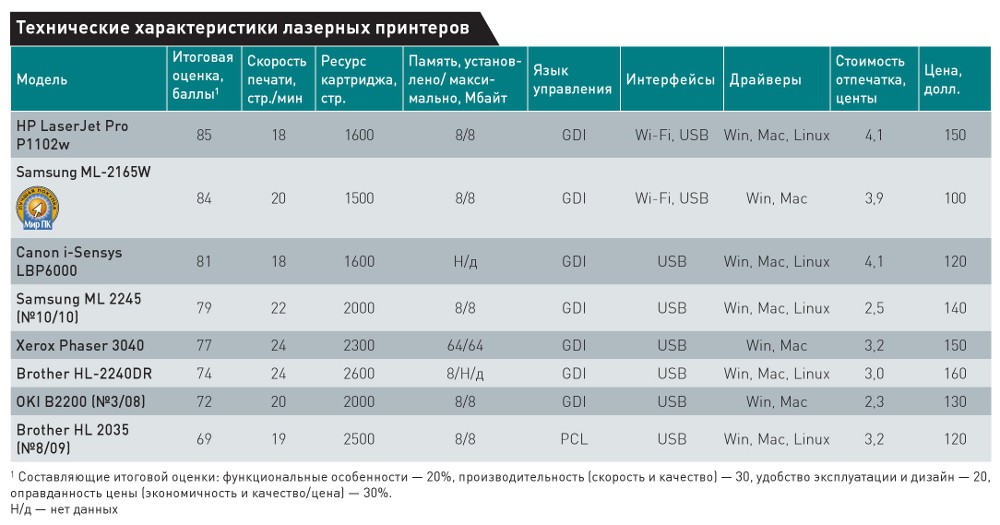 Выбирая среди представленных устройств, мы решили остановиться на модели Samsung ML-2165W, имеющей приемлемое функциональное наполнение, и обеспечивающей неплохое качество печати. На наш взгляд, она может стать оптимальным выбором для персонального использования, так что ей достался значок «Лучшая покупка».