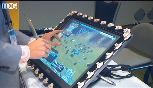 Возможности реализации обратной связи для устройств с сенсорными экранами крайне ограниченны. Такие дисплеи способны вибрировать при прикосновении, и этим их функции исчерпываются. На конференции Computer Human Interaction (CHI), проходившей в мае 2011 г. в Ванкувере, ученые из Университета Британской показали дисплей, который может становиться «скользким». Его прототип был снабжен четырьмя приводами, обеспечивающими вибрацию.