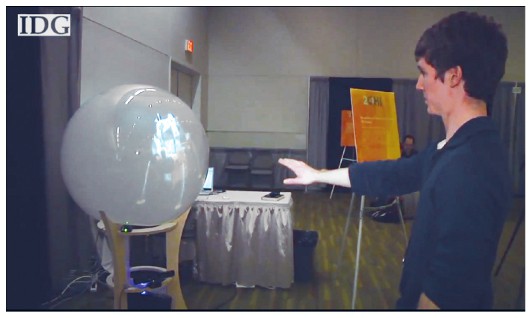 Если ZeroTouch позволит создавать 3D-объекты, то технология Snowglobe поможет взаимодействовать с ними. Устройство на основе Snowglobe представляет собой большой акриловый шар, на внутренние поверхности которого проецируется изображение через отверстие внизу. Два сенсора Microsoft Kinect направлены на пользователя, и когда он перемещается вокруг шара, объект внутри движется вслед за ним. А чтобы изменить ориентацию или размер объекта, достаточно развести руки в стороны. Изображение создается 3D-проектором, поэтому когда пользователь наденет 3D-очки, он увидит трехмерную картинку.